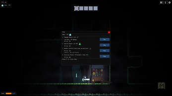 Players traverse moving a, dodge patrolling enemies, and shoot projectiles through the air. We strive to instill a sense of depth in world traversal by utilizing multiple scrolling, parallaxing backgrounds that ground the player in the physical world. There are also hidden shops where players can purchase upgrades and special items.